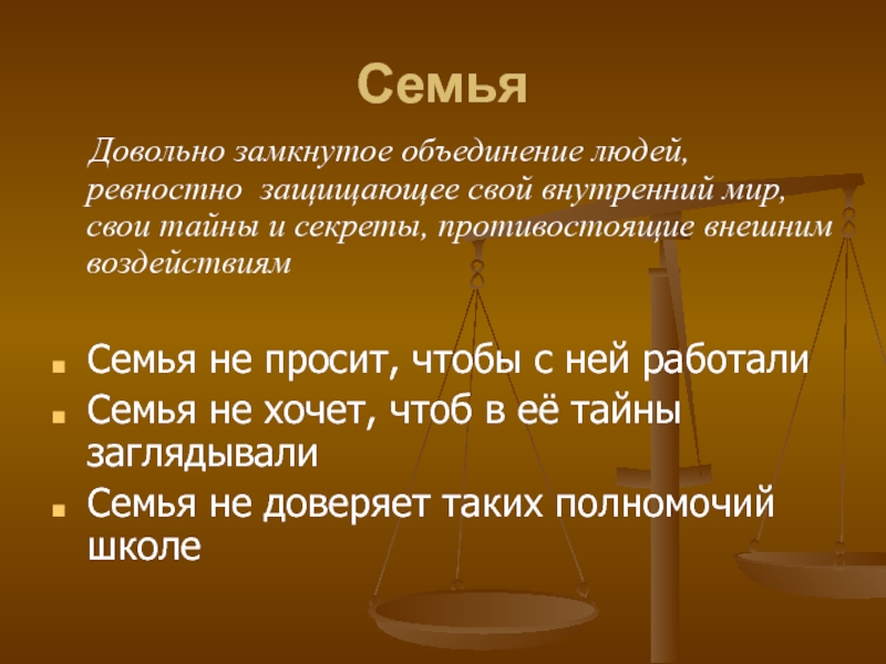 Семья – любовь: супружеская, родительская, детская, родственная.