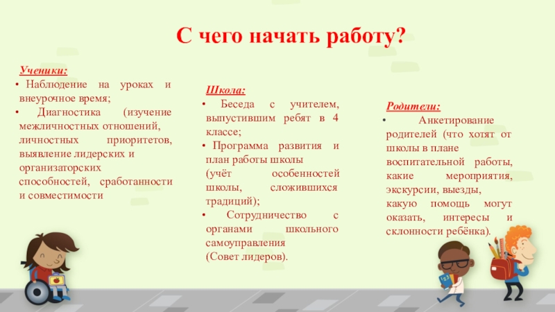 какую помощь могут оказать, интересы и склонности ребёнка).