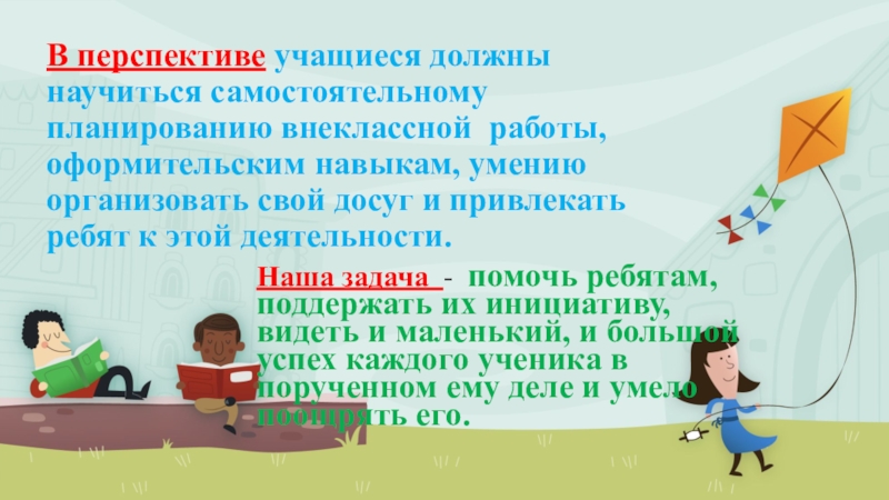 Наша задача - помочь ребятам, поддержать их инициативу, видеть и маленький, и большой успех каждого ученика в порученном ему деле и умело поощрять его.