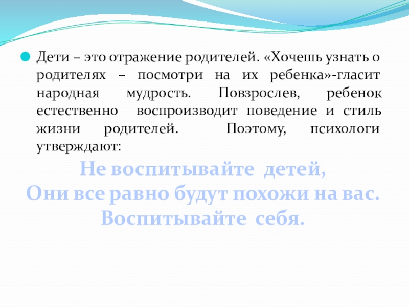 Они все равно будут похожи на вас. Воспитывайте себя.