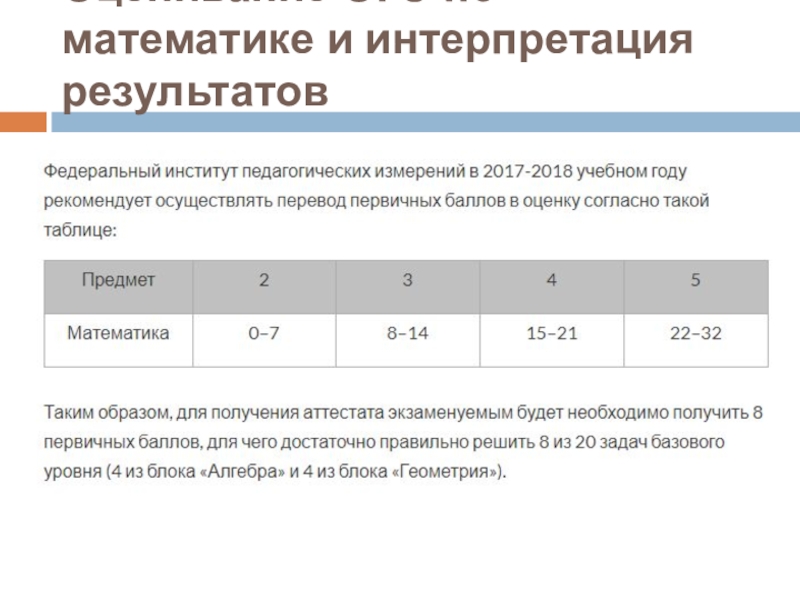 Слайд 4Оценивание ОГЭ по математике и интерпретация результатов