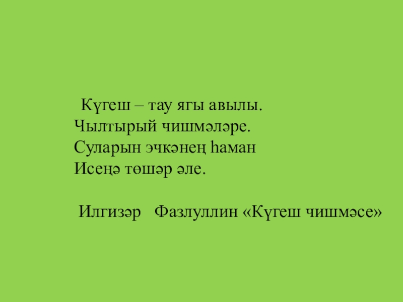 Слайд 7 Күгеш – тау ягы авылы. Чылтырый чишмәләре.
