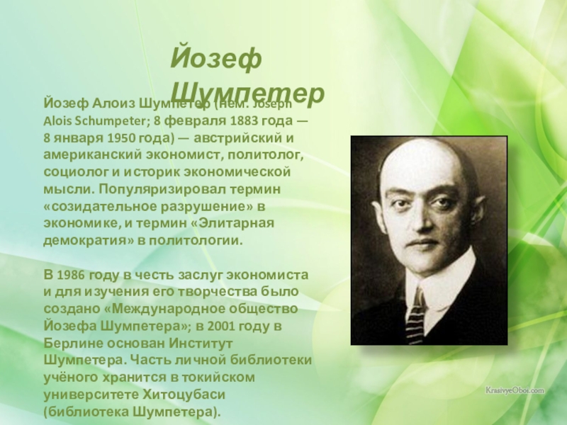 Слайд 6Йозеф Шумпетер
