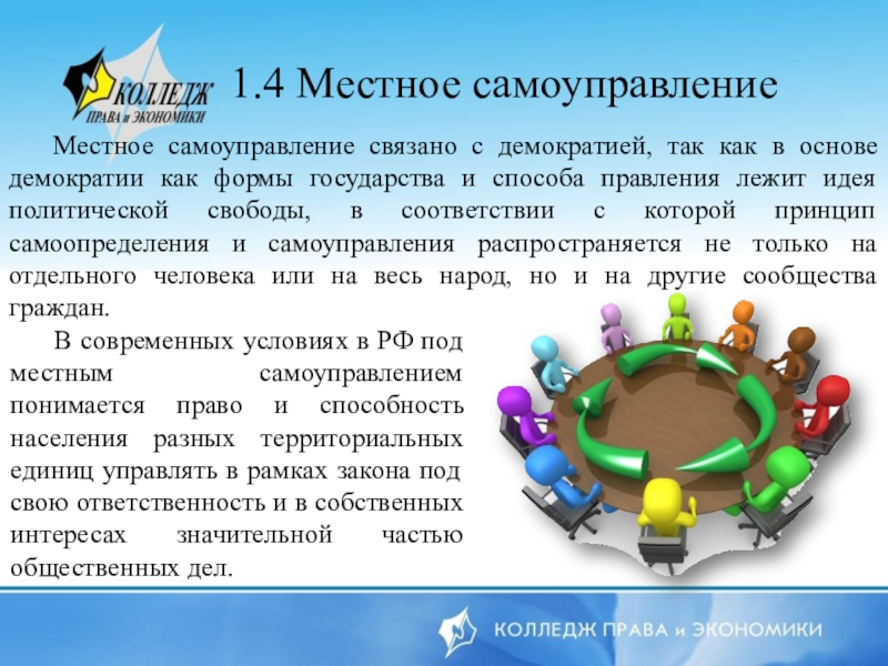 Слайд 101.4 Местное самоуправление
