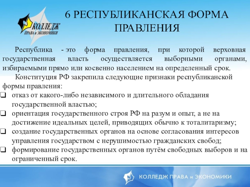 6 РЕСПУБЛИКАНСКАЯ ФОРМА ПРАВЛЕНИ