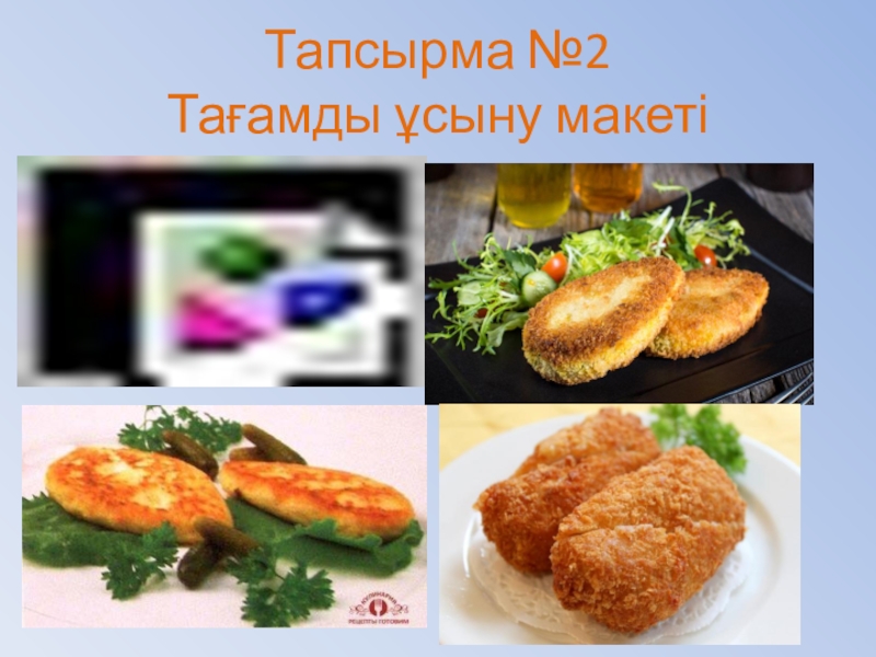 Слайд 6Тапсырма №2 Тағамды ұсыну макеті
