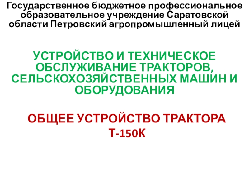 ОБЩЕЕ УСТРОЙСТВО ТРАКТОРА Т-150К