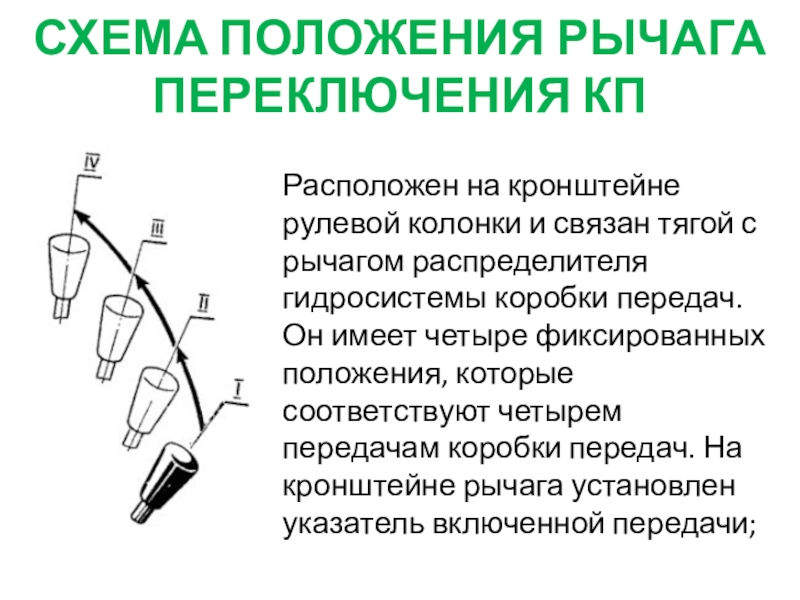 Слайд 19СХЕМА ПОЛОЖЕНИЯ РЫЧАГА ПЕРЕКЛЮЧЕНИЯ КП
