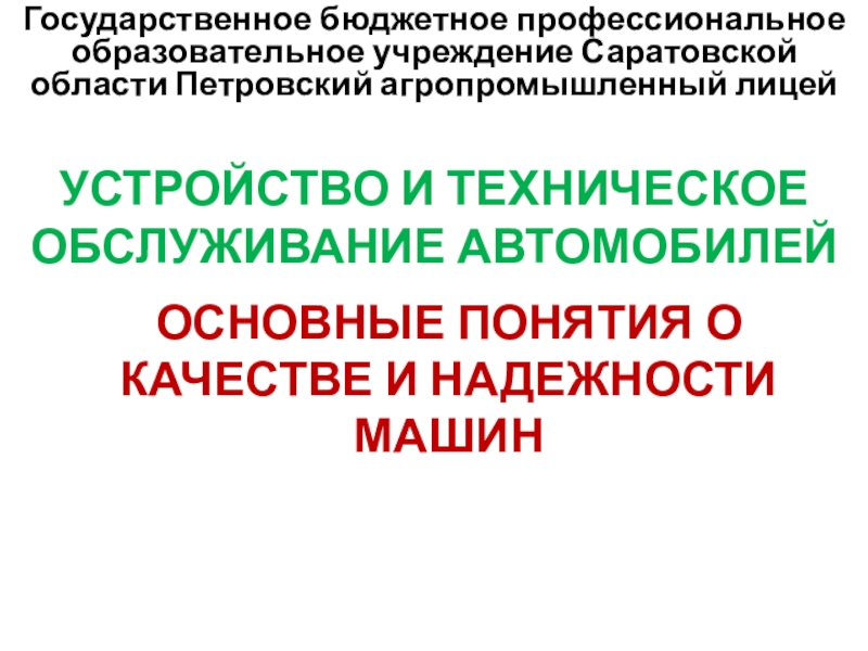 ОСНОВНЫЕ ПОНЯТИЯ О КАЧЕСТВЕ И НАДЕЖНОСТИ МАШИН