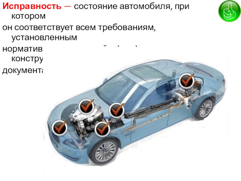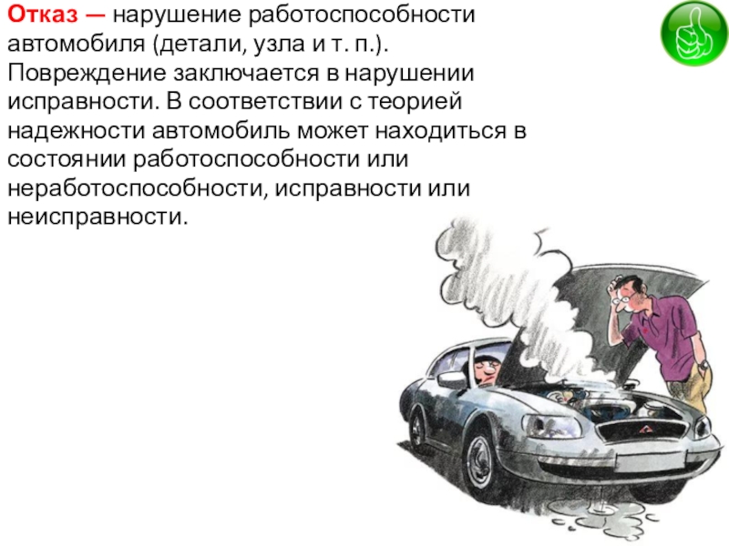 Слайд 12Неисправность — состояние автомобиля, при котором он не