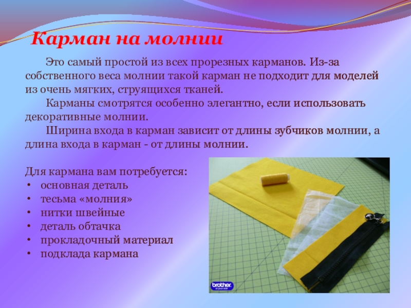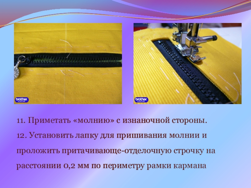 ЗАНЯТИЕ: «Способы обработки кармана на молнии».