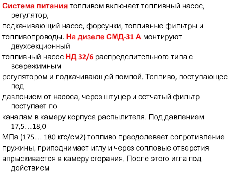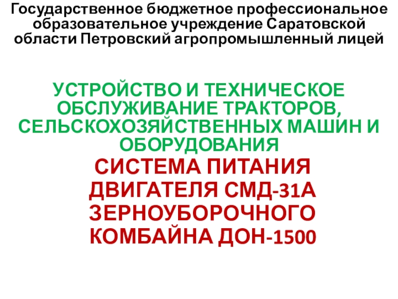 СИСТЕМА ПИТАНИЯ ДВИГАТЕЛЯ СМД-31А ЗЕРНОУБОРОЧНОГО КОМБАЙНА ДОН-1500