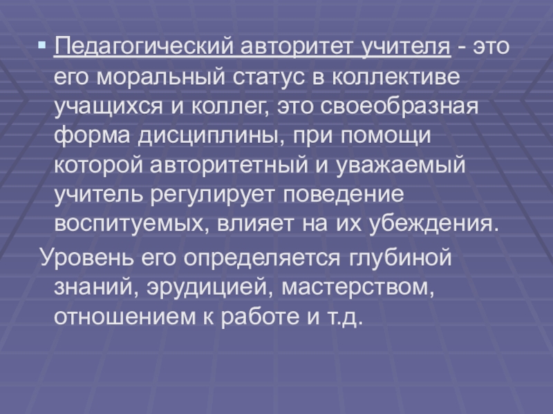 Педагогический авторитет учителя - это его моральный статус в коллективе учащихся и