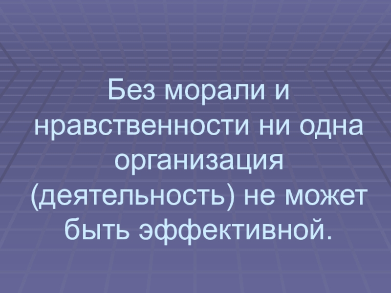 Слайд 4Без морали и нравственности ни одна организация (деятельность) не может быть