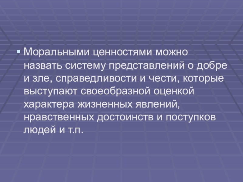 Моральными ценностями можно назвать систему представлений о добре и зле, справедливости