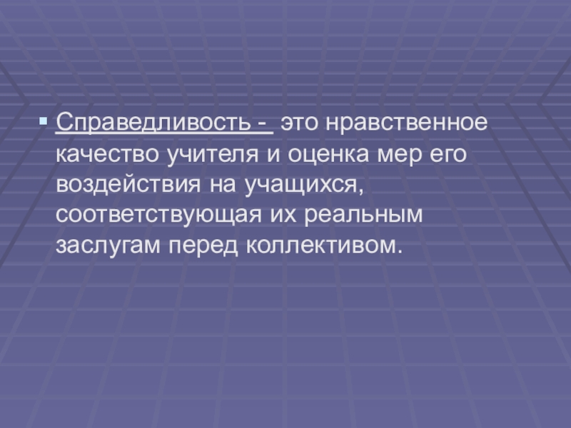 Справедливость - это нравственное качество учителя и оценка мер его воздействия