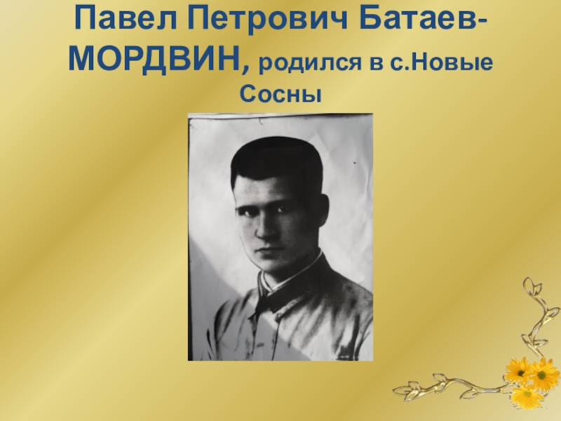 Слайд 20Павел Петрович Батаев-МОРДВИН, родился в с.Новые Сосны