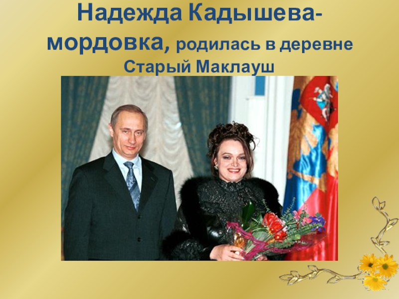 Слайд 17Надежда Кадышева- мордовка, родилась в деревне Старый Маклауш