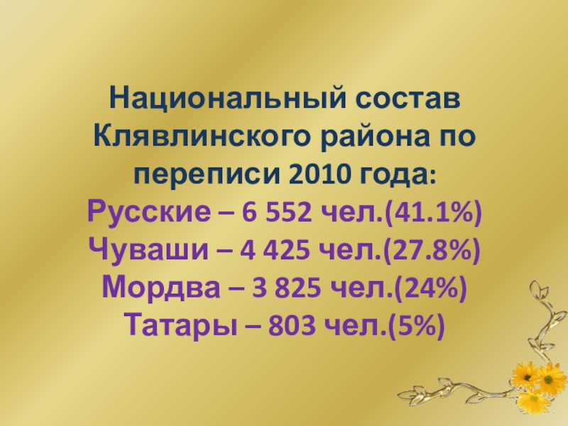 Слайд 7Национальный состав Клявлинского района по переписи 2010 года: