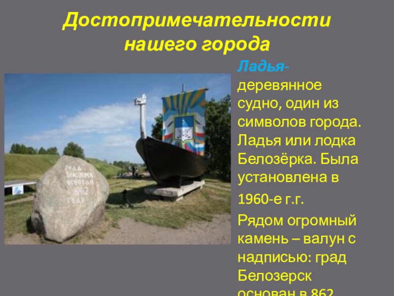 Рядом огромный камень – валун с надписью: град Белозерск основан в 862 году.