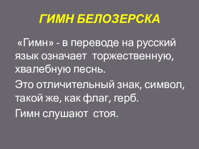 Слайд 5ГИМН БЕЛОЗЕРСКА