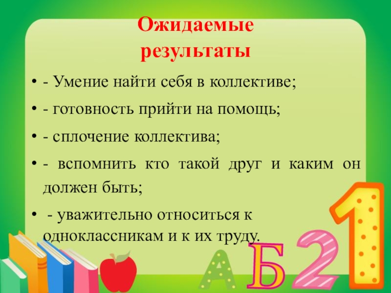 - уважительно относиться к одноклассникам и к их труду.