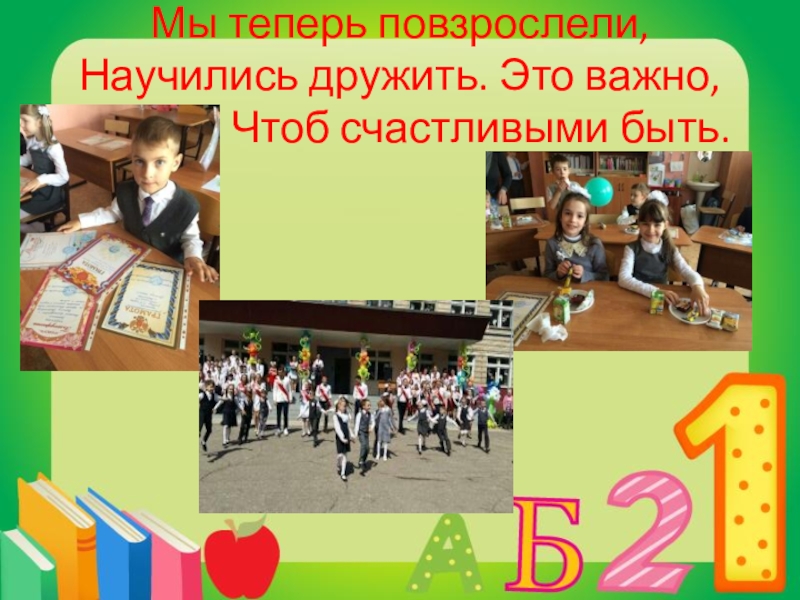 Слайд 21Мы теперь повзрослели, Научились дружить. Это важно, ребята, Чтоб счастливыми быть.