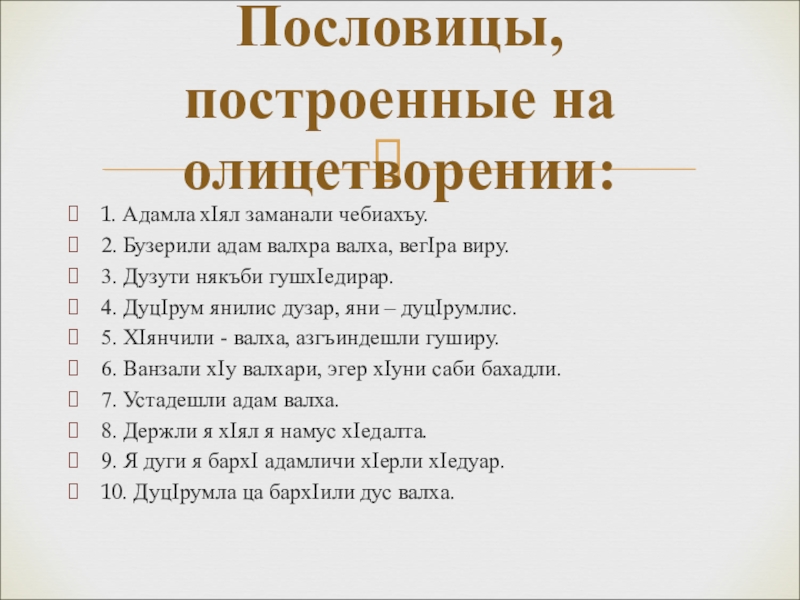 Пословицы, построенные на олицетворении: