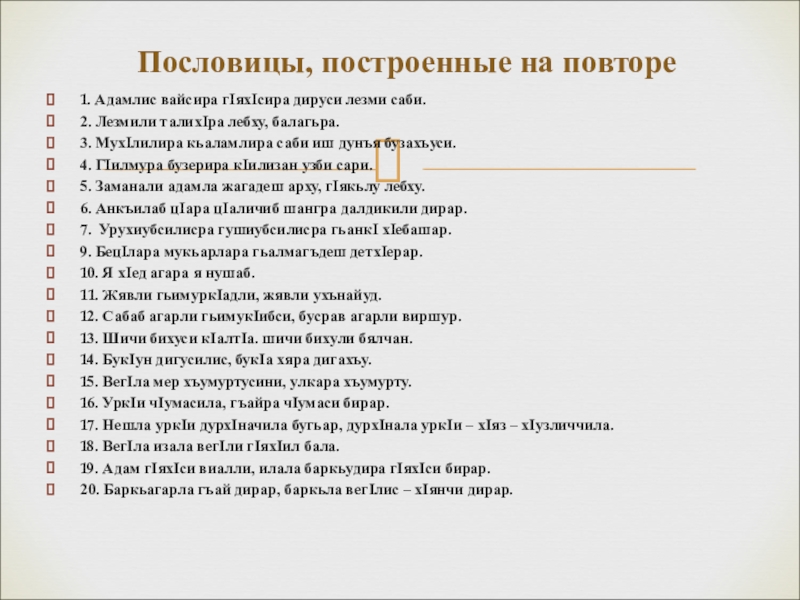 Пословицы, построенные на повторе