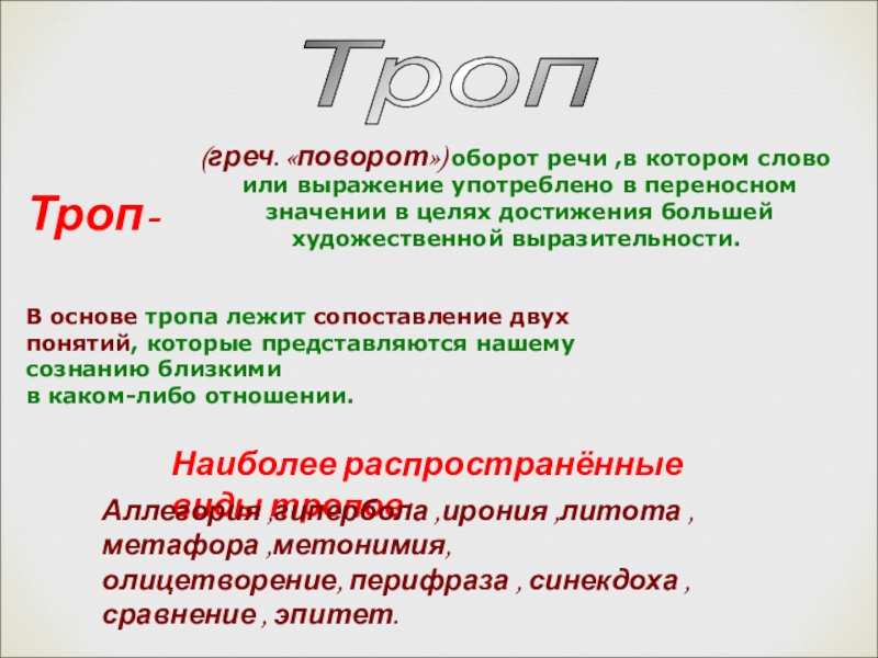Наиболее распространённые виды тропов: