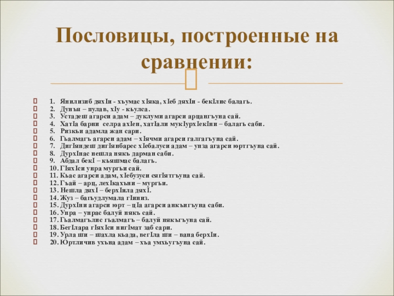 1. Янилизиб дяхIи - хъумас хIяка, хIеб дяхIи - бекIлис балагь.