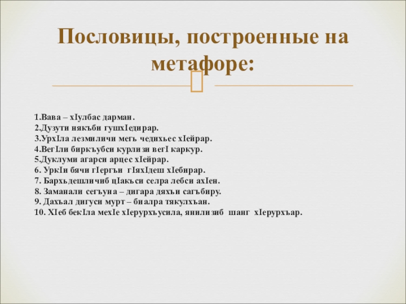 Пословицы, построенные на метафоре: