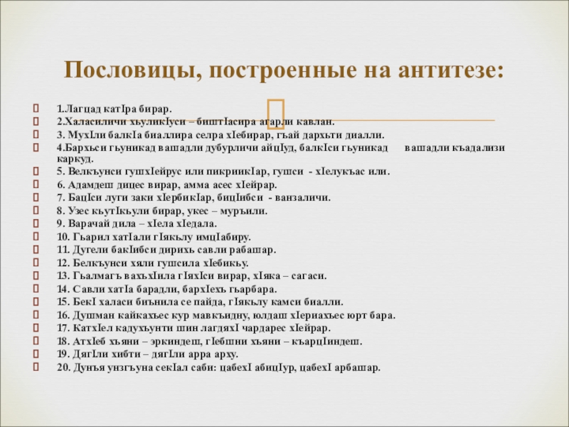 Пословицы, построенные на антитезе: