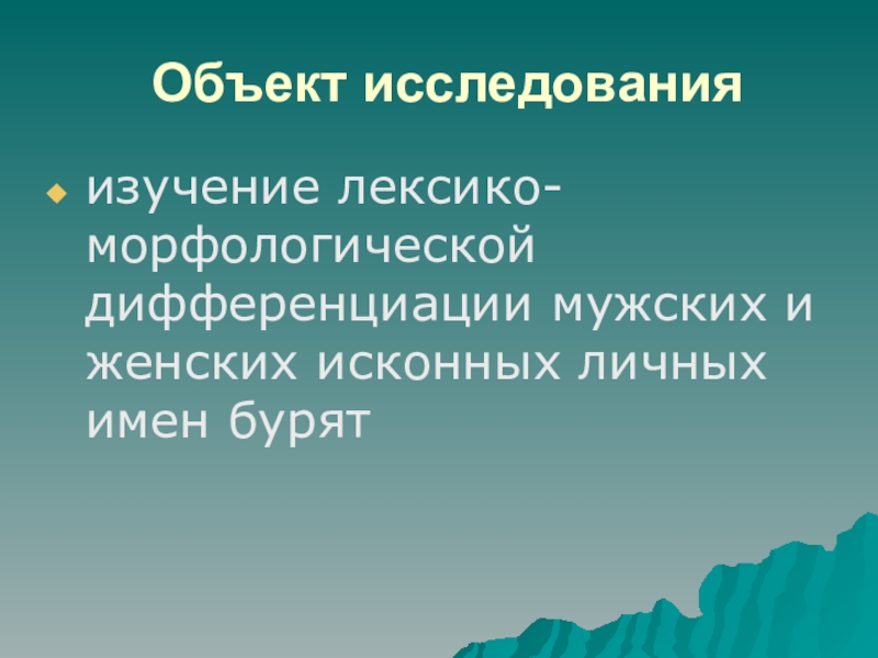 Объект исследования изучение лексико-морфологической дифференциации мужских и женских исконных личных имен бурят
