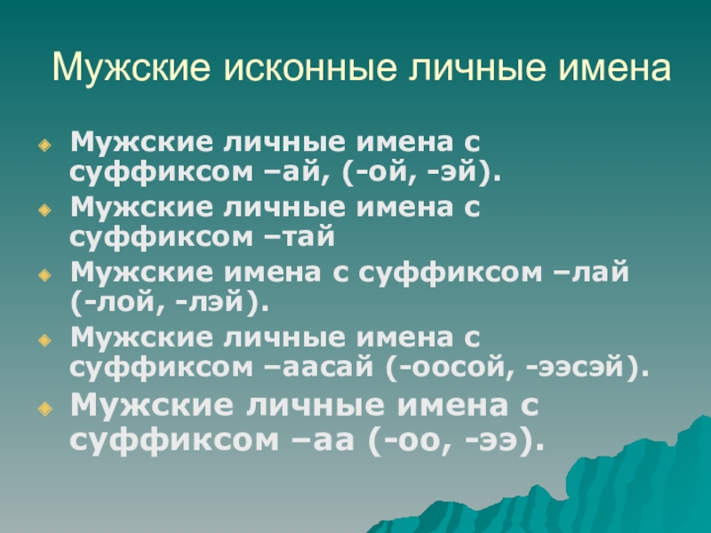 Мужские исконные личные именаМужские личные имена с суффиксом –ай, (-ой, -эй). Мужские личные имена с суффиксом –тай