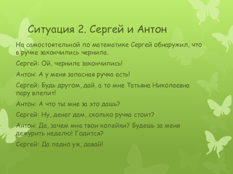 Сергей: Будь другом, дай, а то мне Татьяна Николаевна пару влепит!