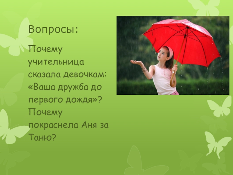 Почему учительница сказала девочкам: «Ваша дружба до первого дождя»? Почему покраснела