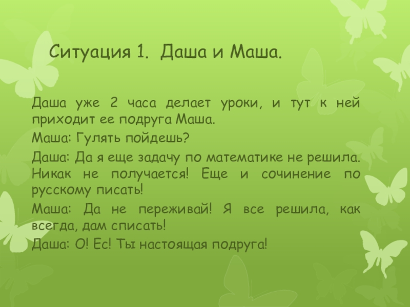 Маша: Да не переживай! Я все решила, как всегда, дам списать!