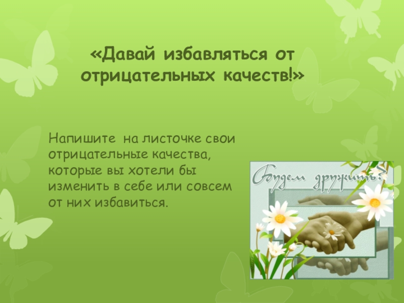 Слайд 9«Давай избавляться от отрицательных качеств!»