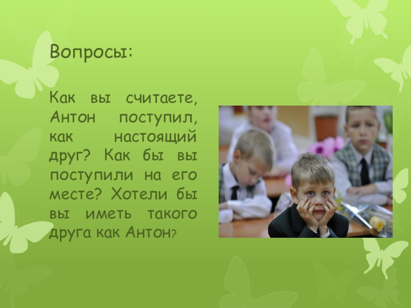 Как вы считаете, Антон поступил, как настоящий друг? Как бы вы