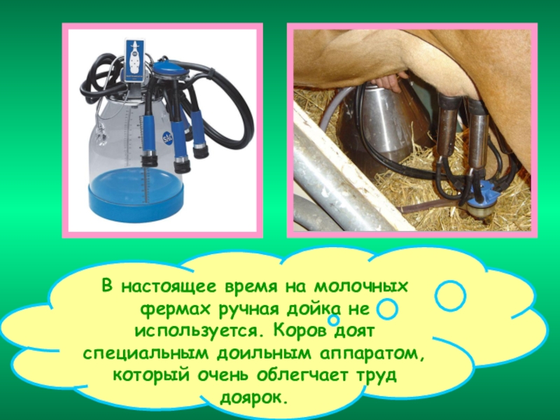 Молоко из вымени выдаивают. Раньше это делали вручную.