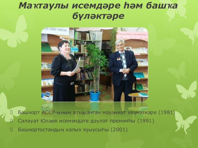 Слайд 9Маҡтаулы исемдәре һәм башҡа бүләктәре