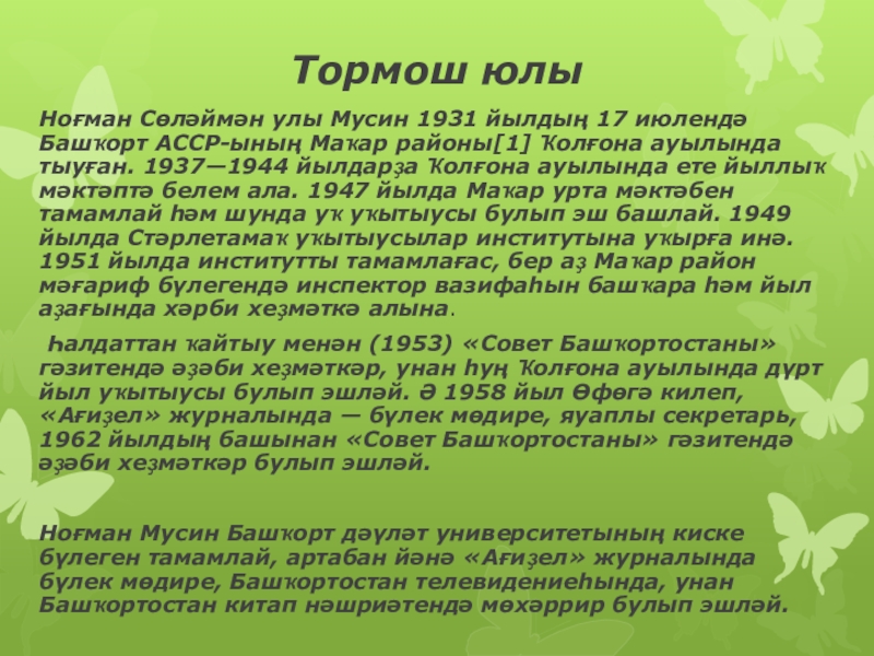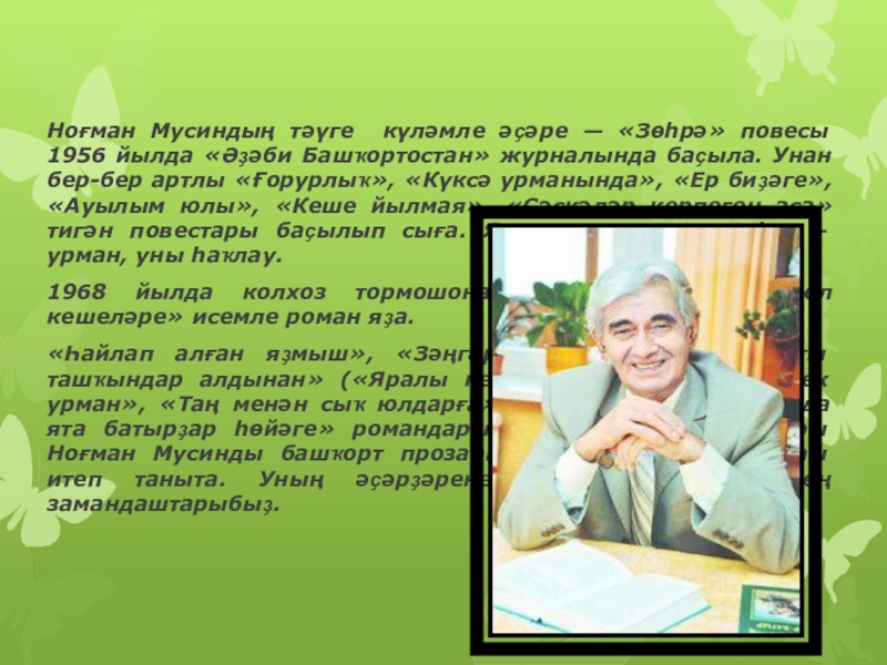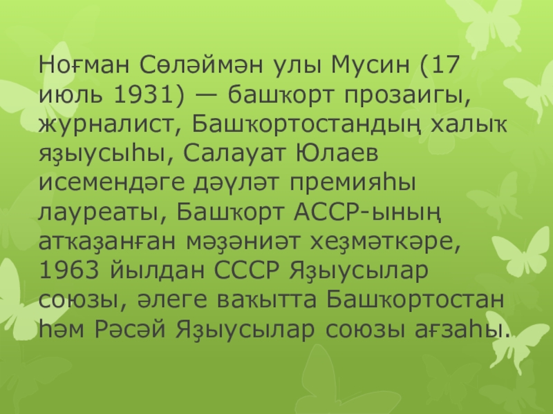 Слайд 2Ноғман Сөләймән улы Мусин (17 июль 1931) — башҡорт прозаигы, журналист,