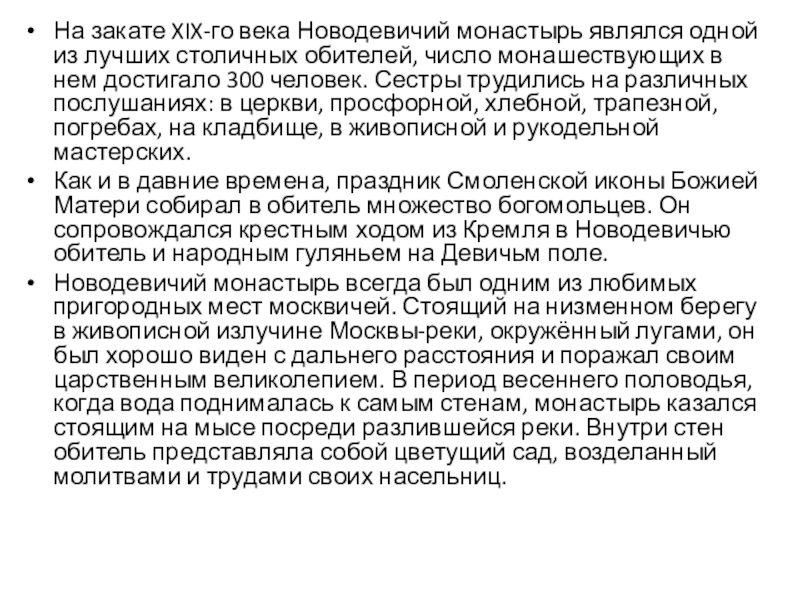 Слайд 29На закате XIX-го века Новодевичий монастырь являлся одной из лучших столичных