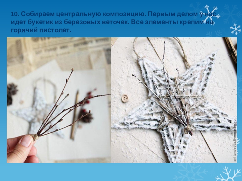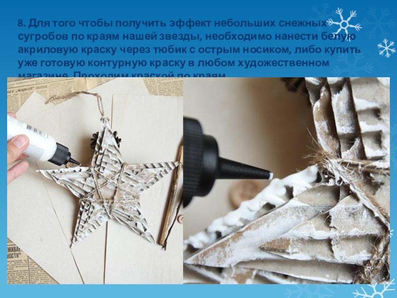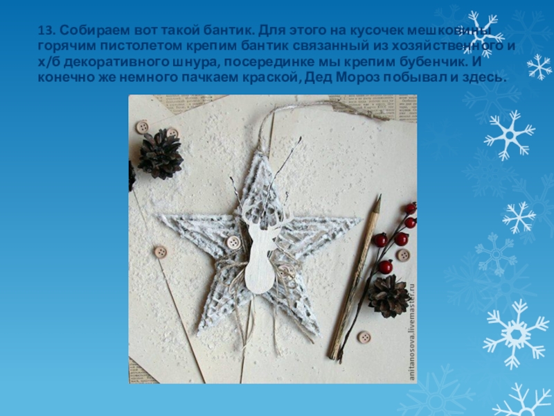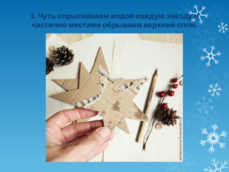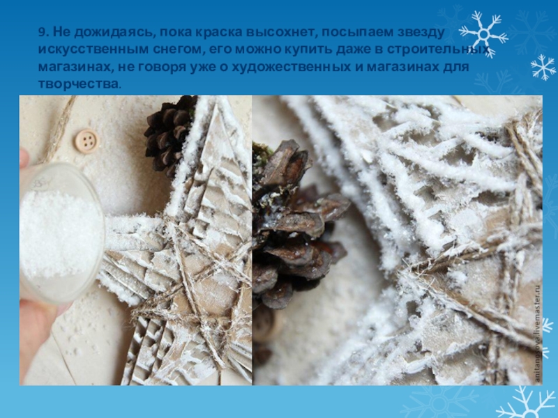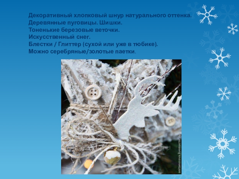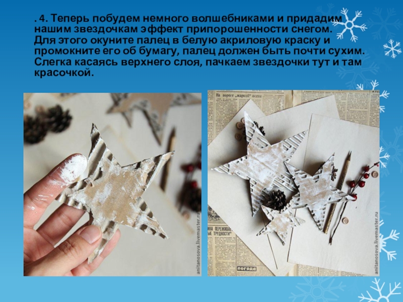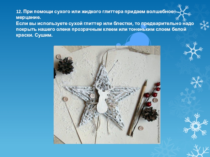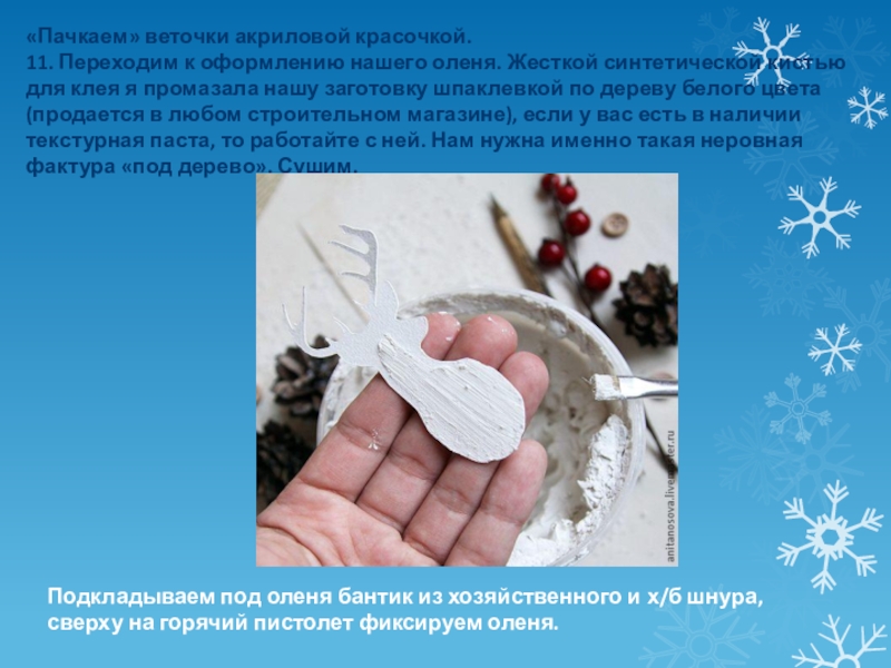 11. Переходим к оформлению нашего оленя. Жесткой синтетической кистью для клея я промазала нашу заготовку шпаклевкой по дереву белого цвета (продается в любом строительном магазине), если у вас есть в наличии текстурная паста, то работайте с ней. Нам нужна именно такая неровная фактура «под дерево». Сушим.