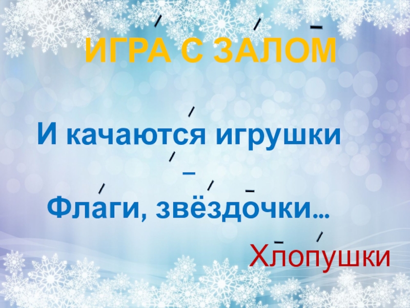 ИГРА С ЗАЛОМИ качаются игрушки –Флаги, звёздочки…Хлопушки