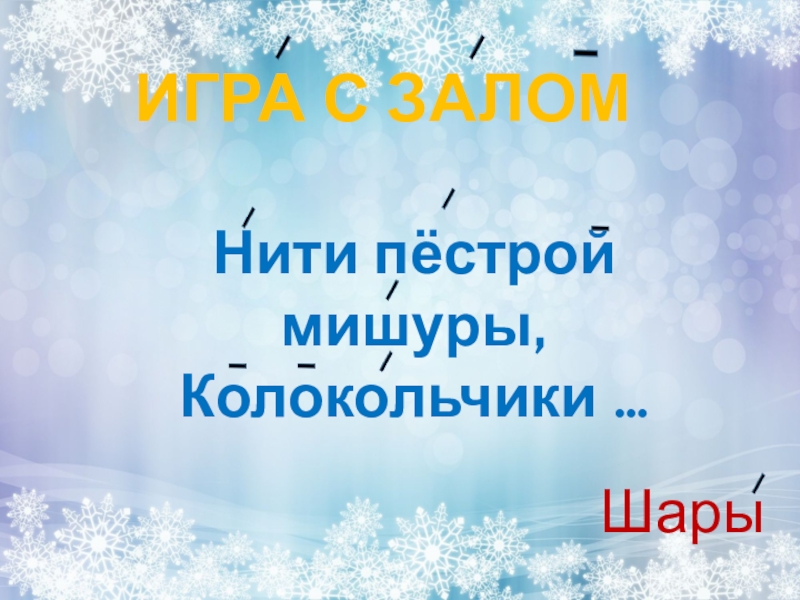 ИГРА С ЗАЛОМНити пёстрой мишуры,Колокольчики …Шары