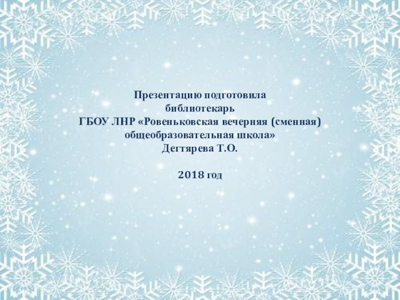 Презентацию подготовила  библиотекарь  ГБОУ ЛНР «Ровеньковская вечерняя (сменная)  общеобразовательная школа»  Дегтярева Т.О.