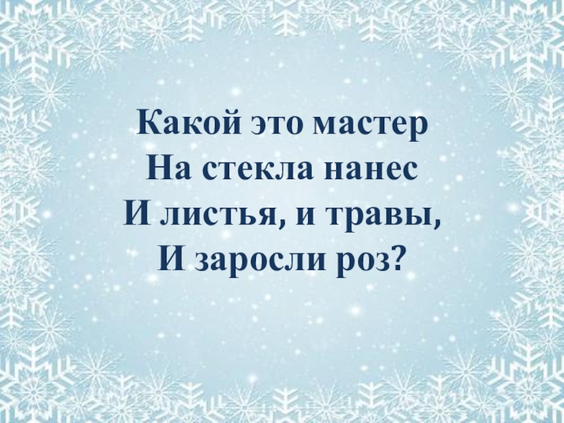 Какой это мастер На стекла нанес И листья, и травы,  И заросли роз?