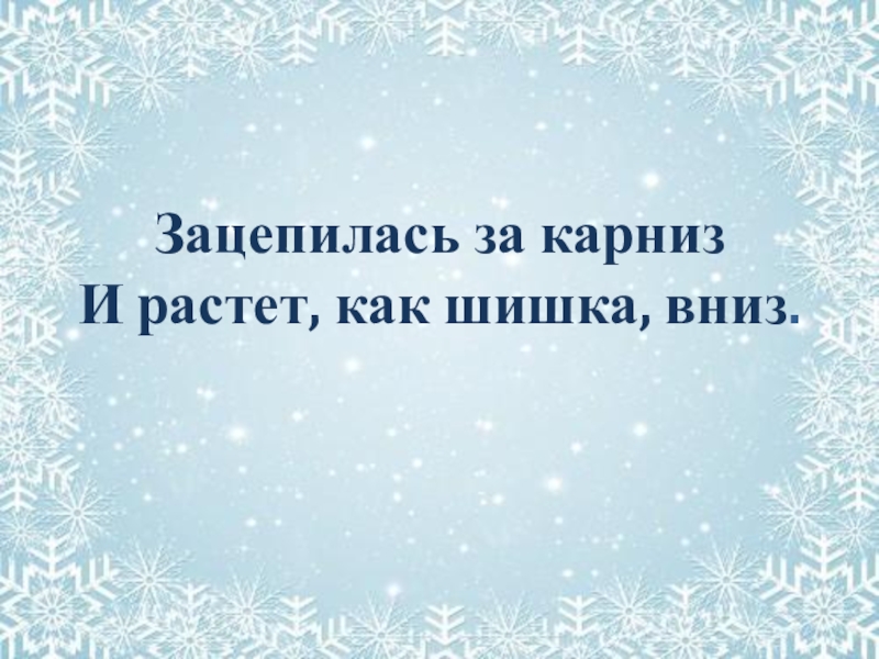 Слайд 8Зацепилась за карниз И растет, как шишка, вниз.